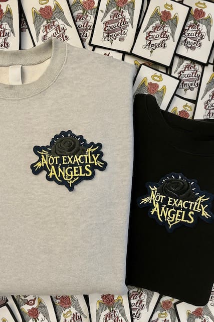 Classic comfort meets unmistakable edge. The Not Exactly Angels signature stitch crewneck is built for those who lead with quiet power. Featuring our signature golden-stitched patch over a bold black rose (or O.G. rose), this heavyweight fleece delivers clean style with a message: not all angels wear halos. Choose between heather grey or classic black — either way, this one speaks volumes.